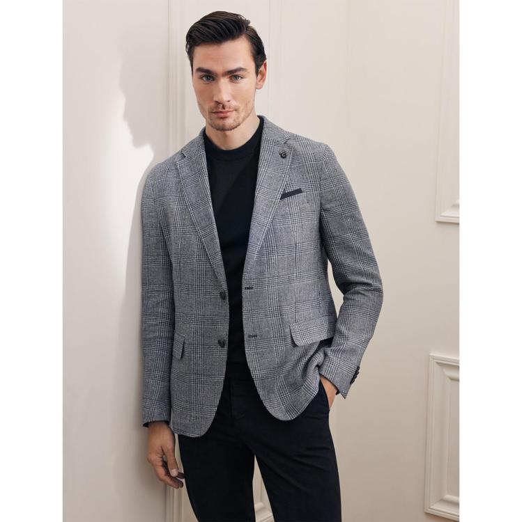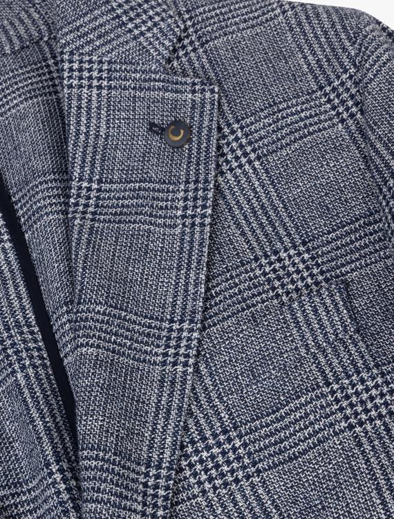 Het Renazzo Colbert is een must-have voor elke stijlvolle man. Dit donkerblauwe colbert is gemaakt van een hoogwaardige katoenblend met linnen, waardoor het niet alleen luxueus aanvoelt, maar ook perfect is voor warmere dagen. Het verfijnde ruitdessin geeft het colbert een unieke uitstraling, terwijl de single breasted sluiting zorgt voor een klassieke look. De klepzakken en binnenzakken bieden voldoende opbergruimte voor je essentials, en de gevoerde mouwen zorgen voor extra comfort. De lapel pin is een subtiel detail dat het colbert compleet maakt.