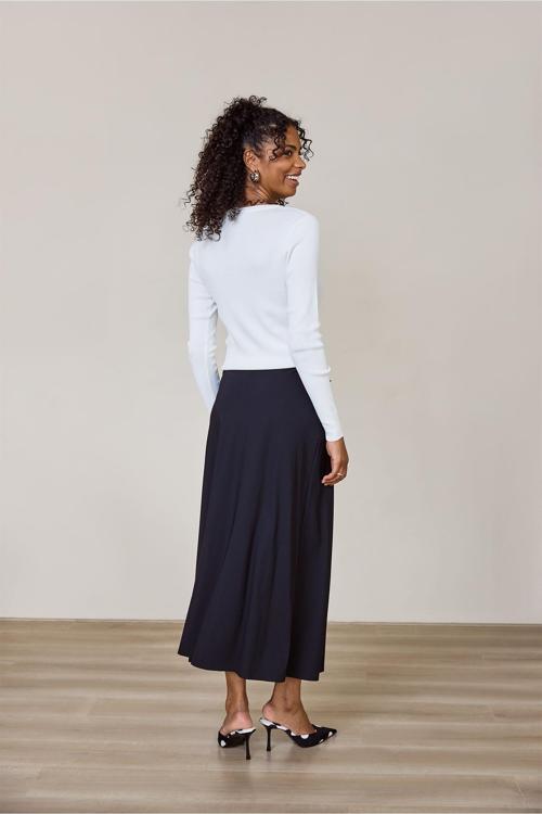 De Chloe skirt: een vloeiende beweging van exclusieve eenvoud, ontworpen voor de moderne vrouw.