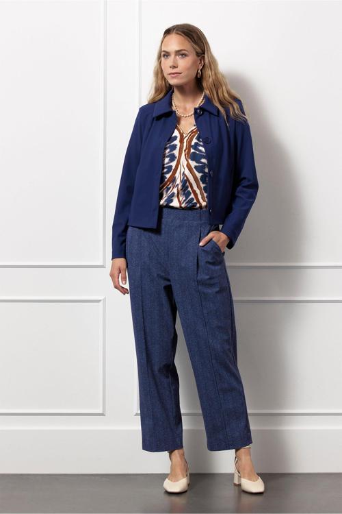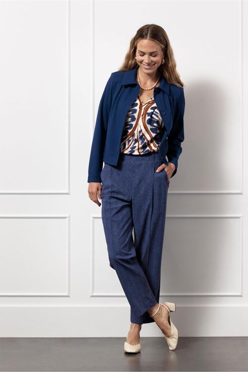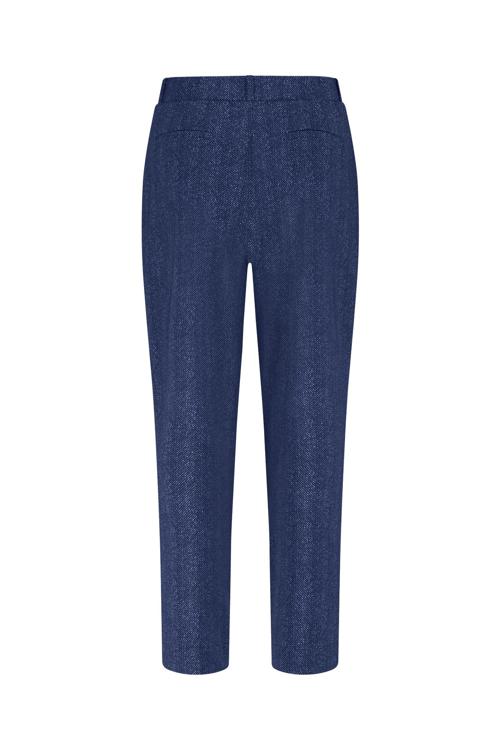 - Verfijnde visgraat: Het subtiele visgraatmotief in Ink Blue geeft de broek een tijdloze, elegante look die je niet vaak ziet.