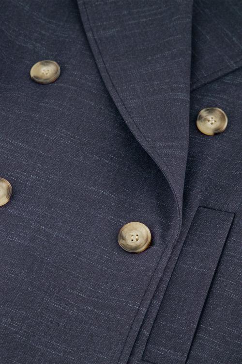 Heeft de stoere en tijdloze uitstraling van donker denim, maar dan met het zachte en comfortabele gevoel van travelstof. - Chic Double-Breasted Model
