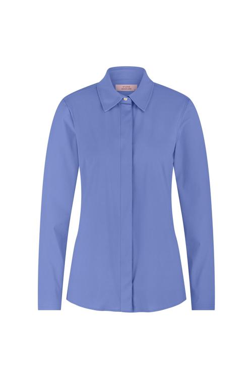 De verborgen knoopsluiting, klassieke kraag en getailleerde pasvorm zorgen voor een elegante uitstraling, terwijl de soepele stretchstof optimale bewegingsvrijheid biedt.