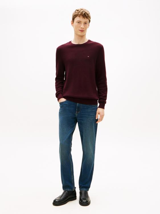 De Tommy Hilfiger getextureerde trui in de kleur Deep Burgundy is een stijlvolle essential die moeiteloos klasse uitstraalt. Gemaakt van 100% puur gekamd katoen, biedt deze trui een luxueuze, zachte feel en optimaal draagcomfort. De subtiele textuur en de kenmerkende ronde hals zorgen voor een moderne, maar tijdloze uitstraling.