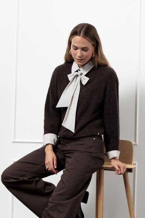 Het klassieke model met een ronde hals, knoopsluiting en lange mouwen is een veelzijdige basic die nooit uit de mode raakt. - Rijke Kleur 'Espresso'