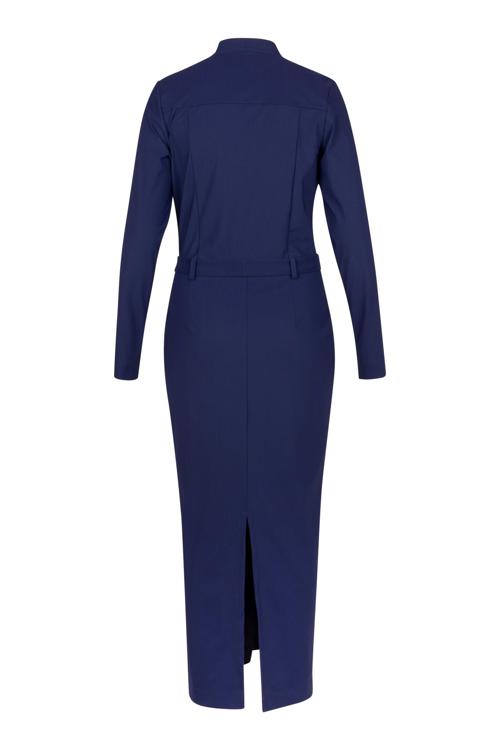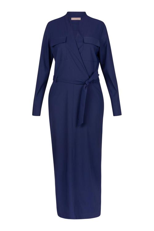 Deze inktblauwe jurk heeft een doordachte pasvorm en stijlvolle details. De cargozakken op de borst geven een subtiele utility-touch, terwijl de overslag en het strikceintuur juist zorgen voor een vrouwelijke vorm. De maxi fit valt soepel langs het lichaam en de split aan de achterzijde zorgt voor extra bewegingsvrijheid. Dankzij de geïntegreerde steekzakken behoudt de Jette haar elegante uitstraling zonder in te leveren op functionaliteit.