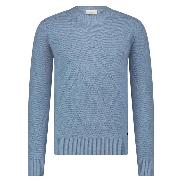 Een tijdloze essential: deze lichtblauwe Seven Dials trui met argyle structuur geeft elke outfit een stijlvolle en frisse uitstraling.