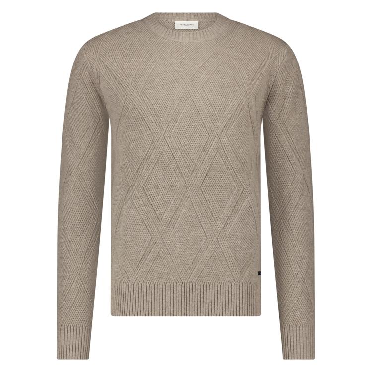 Een tijdloze, stijlvolle herentrui met een verfijnd argyle patroon, uitgevoerd in een warme bruintint. Deze knit is een perfecte mix van comfort en klassieke elegantie — ideaal voor zowel casual als smart looks.