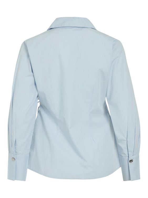 De lichtblauwe tint straalt frisheid uit en maakt dit item perfect voor zowel zakelijke als casual combinaties. Dankzij het gebruik van 100% biologisch katoen voelt de stof zacht aan op de huid en is de blouse ademend en duurzaam.