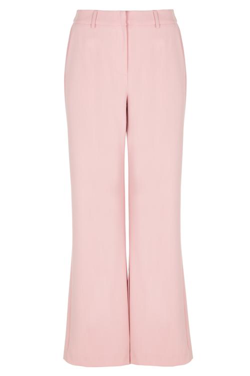 Een krachtige pantalon in zacht roze die vrouwelijkheid en verfijning moeiteloos samenbrengt.