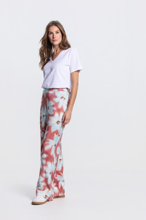 Een elegante wide leg broek met bloemenprint die comfort en vrouwelijke flair perfect combineert.