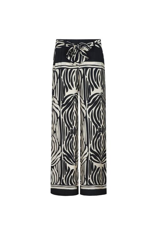 Een statement pantalon met grafische print die direct een krachtige en stijlvolle uitstraling geeft.