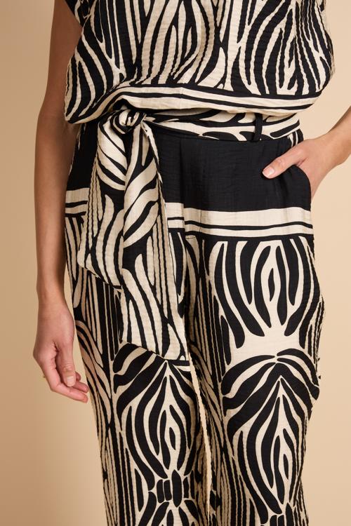 Dankzij de krachtige all-over print is deze broek een echte blikvanger. Combineer hem met de bijpassende top voor een complete statement look, of draag hem met een rustige effen top voor een stijlvolle en gebalanceerde outfit.