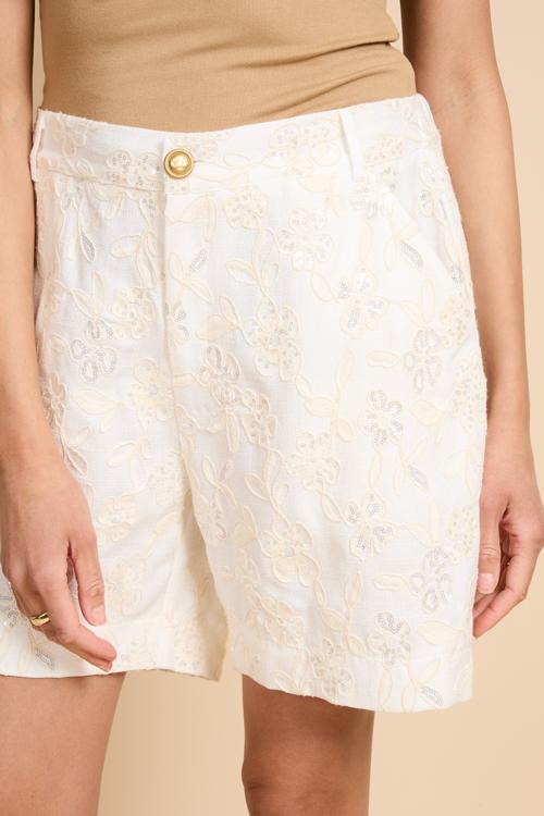 Een elegante short met verfijnde bloemenstructuur voor een frisse en stijlvolle zomerlook.