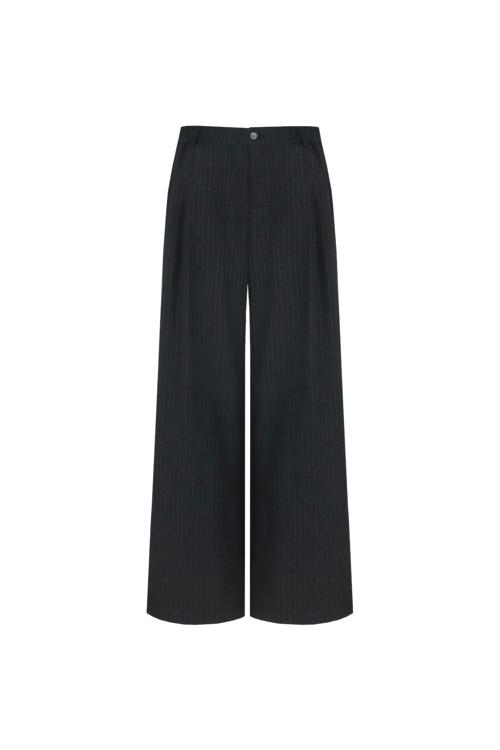 De hoge taille en wijde pijpen creëren een elegant silhouet dat het lichaam mooi verlengt en flatteert. De broek valt soepel en biedt een comfortabele pasvorm, terwijl het subtiele streepdesign zorgt voor een extra chique touch zonder te overheersen.